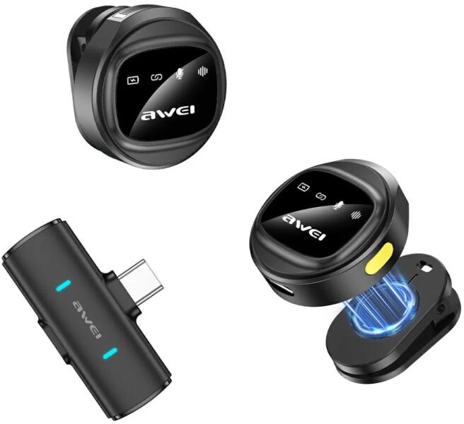 Awei Vezeték nélküli csíptetős mikrofon AWEI MK3 Duo fekete