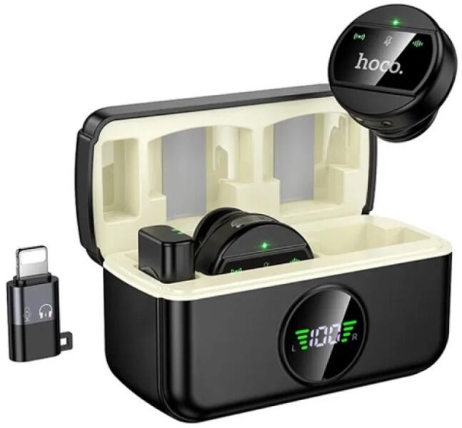 HOCO L22 bluetooth mikrofon 2db Type-C/Lightning, zajszűrő, FEKETE