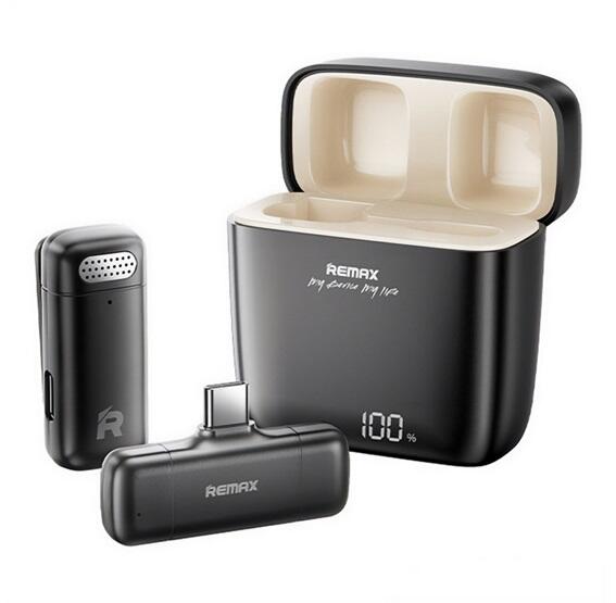 Remax K13 Bluetooth Mikrofon Type-C, Zajszűrő + Töltőtok, Fekete